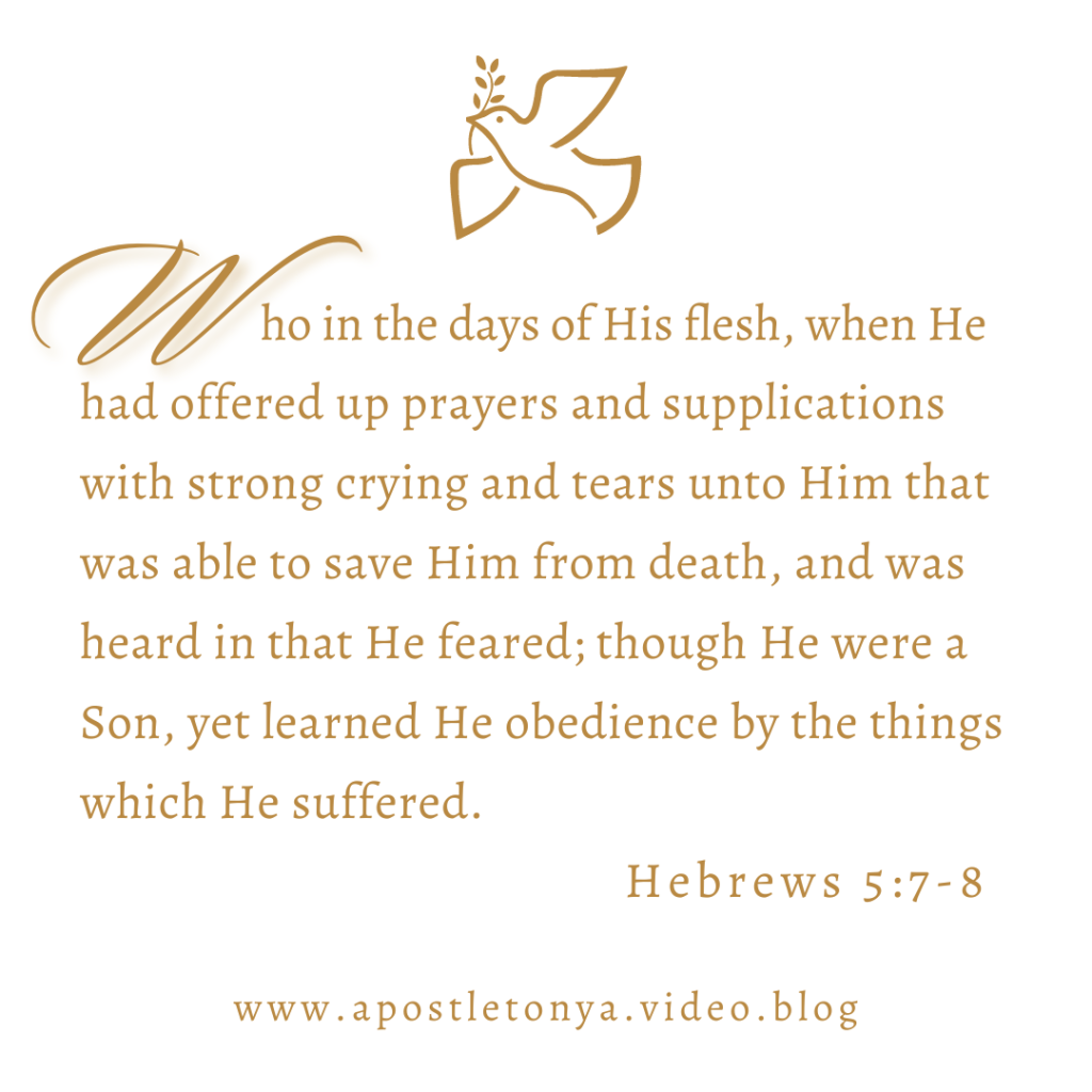 In the Holy Bible, we read of the magnificent history of our Blessed Master’s faithfulness and obedience to our most Holy Father and of our Lord’s fervency in prayer and supplications in His Earthly Ministry. In the blessed Book of Hebrews, Chapter five, verses seven through eight it is recorded our Eternal Savior offered up His prayers and supplications with strong tears. Surely, our Risen Lord’s most perfect Heart was filled with reverence for His Father. This is most marvelously recorded in the Scriptures for our encouragement and to teach us on how to offer prayers to our Holy Lord wherewith are Heard and invariably Answered.