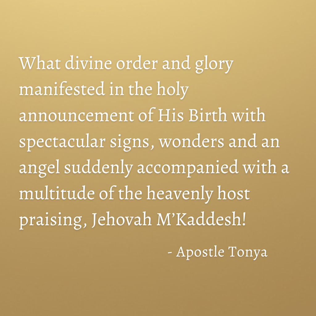 What magnificence we are even granted in the blessed pages of the Scriptures preserved for us by our Father, to knowest of our Savior, Christ the Lord’ Birth. And what divine order and glory manifested in the holy announcement of His Birth with spectacular signs, wonders and an angel suddenly accompanied with a multitude of the heavenly host praising, Jehovah M’Kaddesh!